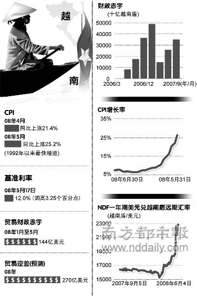 而通貨膨脹在過去數(shù)月里一直是越南經(jīng)濟(jì)決策官員的主要課題,越南當(dāng)?shù)?月份的消費(fèi)者物價(jià)通脹較2007年底時(shí)的12.5%,上升超過一倍至25.2%.
