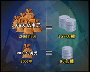 盡管高油價(jià)給美國本國也帶來影響,但譚雅玲認(rèn)為在美國的策略組合當(dāng)中,美元貶值可以化解他國內(nèi)石油價(jià)格上漲帶來的負(fù)面壓力,但是對其他國家的影響則全然不同,2001年,中國官方外匯儲備達(dá)2000億美元,國際石油價(jià)格在每桶25美元左右,中國可以購買80億桶;2008年3月,中國官方外匯儲備是世界第一,達(dá)到1.68萬億美元,以石油價(jià)格100美元計(jì)算,中國可以購買168億桶。也就是說,雖然中國外匯儲備增長7倍多,但真實(shí)購買力只是原來的1倍。德國經(jīng)濟(jì)學(xué)家,《石油戰(zhàn)爭》的作者威廉恩道爾在接受本欄目記者電話采訪時(shí)直接指出。