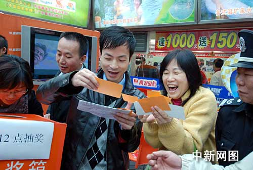 在廣東春節(jié)國內(nèi)游首場熱賣會上,抽獎時中獎的游客興高采烈。胡銀漢攝