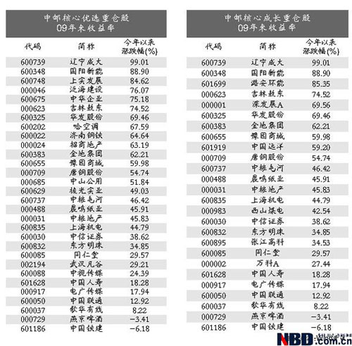 中郵系基金一向以高倉位操作而著稱,不過,高倉位操作的基金并不只中郵一家,中郵系基金業(yè)績一馬當先秘訣何在?它選擇重倉股究竟有何獨到之處呢?記者查閱中郵系基金2008年年報發(fā)現(xiàn),中郵系基金4季度重倉的地產、能源股漲勢兇猛,為其成功奪魁貢獻不小。