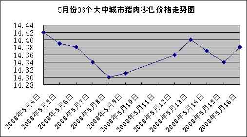 中新網(wǎng)5月19日電 中國國家發(fā)改委網(wǎng)站消息,據(jù)發(fā)改委價(jià)格監(jiān)測中心監(jiān)測,上周(5.12-5.16,下同)全國36個(gè)大中城市豬肉(精瘦肉)平均零售價(jià)格每500克為14.37元,比前一周(5.5-5.9,下同)略漲0.21%。