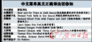 北京粵菜早有規(guī)范英文菜單
