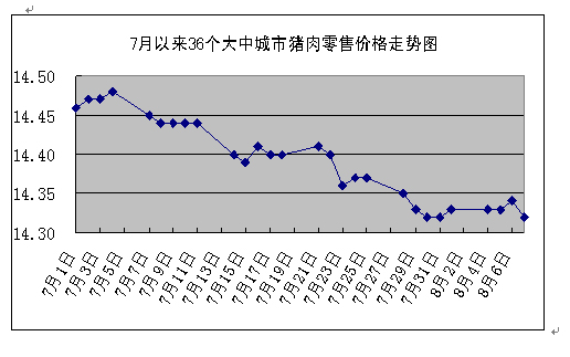 中新網(wǎng)8月11日電 據(jù)國家發(fā)改委網(wǎng)站消息,發(fā)改委價格監(jiān)測中心監(jiān)測顯示,上周(8月4日~8月7日)全國36個大中城市集市、超市豬肉(精瘦肉)平均零售價格每500克為14.33元,與前一周(7月28日~8月1日,下同)持平。