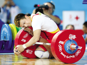 圖:舉重冠軍張湘祥吻過的杠鈴