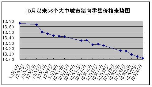 中新網(wǎng)10月27日電 據(jù)國家發(fā)改委網(wǎng)站消息,上周(10月20日~10月24日)全國36個(gè)大中城市集市、超市豬肉(精瘦肉)平均零售價(jià)格每500克為13.09元,與前一周(10月13日~10月17日,下同)相比下降1.58%。