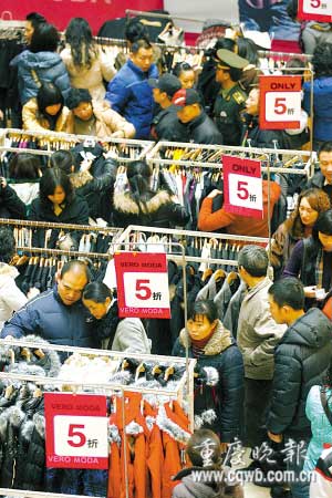 解放碑三日狂購(gòu)活動(dòng)昨日落幕。相關(guān)百貨商場(chǎng)稱,元旦期間銷售出現(xiàn)不同程度井噴,其中一福建男子兩天時(shí)間花了22萬(wàn)元買化妝品。