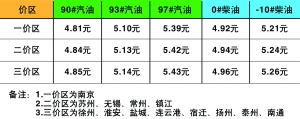 調整后的成品油價格,南京地區(qū)90#汽油從4.60元/升上調為4.81元/升,每升上漲0.21元;