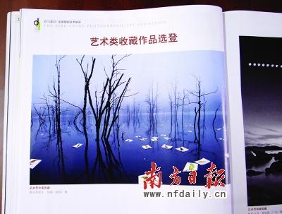 電話里,陳聯(lián)軍告訴記者,他愛好攝影,這次也投了稿。但7月底,陳聯(lián)軍把藝術(shù)類金獎(jiǎng)作品《明天的現(xiàn)實(shí)》圖樣拿給廣告公司的同事看,結(jié)果同事們發(fā)現(xiàn),《明天的現(xiàn)實(shí)》的背景———被水淹沒的枯樹林與10年前他們所購(gòu)買的《全球最新圖庫(kù)大百科》圖庫(kù)里一張未署名的相片如出一轍,只是調(diào)換了方位“翻了個(gè)身”。