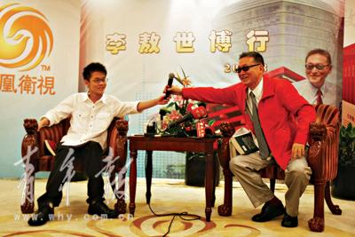 悵惘中的李敖,還有一件牽腸掛肚的大事,就是自己的兒子李戡。李敖對自己17歲的兒子很滿意,認(rèn)為是可塑之材,在“應(yīng)該沒有下一次了”的情況下,他很迫切地在記者面前推薦兒子。“我的兒子李戡這個(gè)月才過17歲,他在臺灣成長,受過教育的污染。這次考上了“國立”臺灣大學(xué),臺大和清華都錄取了他,但他最終還是選擇世界排名50位的北大。”李戡最近出了一本新書《李戡戡亂記》。李敖將兒子的新書在面前舉了又舉,讓記者拍照,還讓兒子坐到自己身邊。采訪開始前,劉長樂對記者說,有人說,李敖這次來是“托孤”的。