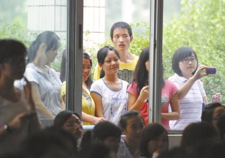 “在教室外面圍觀的同學(xué),注意不要擁擠!痹局皇30名首批師范專業(yè)的學(xué)生參加開班典禮,不足30平方米的教室,竟擠進(jìn)了近200名學(xué)生。他們一是趕來聽課,另一個(gè)也為目睹白巖松大使的風(fēng)采。