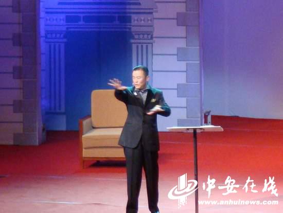 油亮亮的小分頭,筆挺熨帖的黑色禮服,操著“國(guó)語(yǔ)”說(shuō)海派清口,一個(gè)人在臺(tái)上連說(shuō)帶演緊忙活,他就是周立波。9月18日晚,周立波用他“上海話+普通話+合肥話”的精彩表演則讓現(xiàn)場(chǎng)笑聲不斷,掌聲雷鳴。