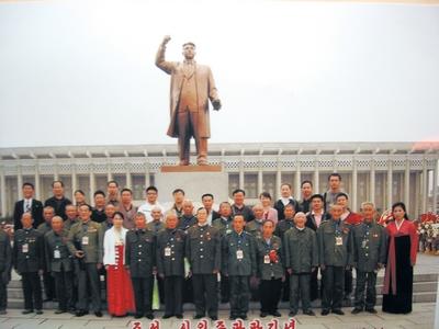 游克源(前排右五)和老戰(zhàn)士代表在朝鮮金日成塑像前合影。游克源 供圖