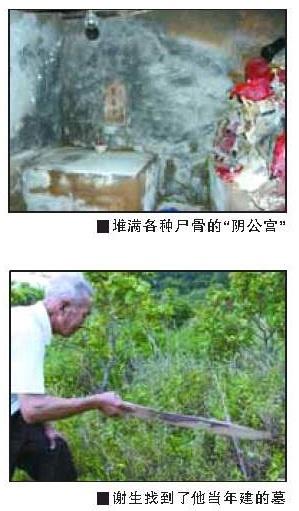 終于等來(lái)了曾做過(guò)“土公”的謝生。謝生今年76歲了,稍稍有些駝背,走路有些緩慢,但老人的頭腦非常清楚,眼中閃爍著令人敬畏的智慧的光芒。對(duì)記者提出的問(wèn)題,老人回答得非常準(zhǔn)確,不夸大事實(shí),如果不知道也不妄加猜測(cè)!拔抑话徇^(guò)不到10個(gè)‘黃金甕’,都搬到鷓鴣山了。另一位‘土公’謝興搬得多,得有100多個(gè),可惜他已經(jīng)去世了?吹降摹S金’很多都爛掉了,大部分只剩下了腿骨和手臂,少部分還存有一點(diǎn)點(diǎn)頭皮骨——腿骨和天靈蓋鈣質(zhì)比較多,所以一般保存得長(zhǎng)久一些。腿骨很短,也就一個(gè)半拳頭長(zhǎng)”,老人邊說(shuō)邊用兩個(gè)拳頭在自己的小腿前比畫(huà)著。