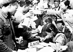 全國(guó)各地工商界踴躍捐獻(xiàn)款項(xiàng),支援志愿軍。