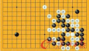 比賽過(guò)程:我國(guó)手下至第33手,其實(shí)還是在布局階段,使出“鎮(zhèn)神頭”的絕招,日本王子俯首稱臣。
