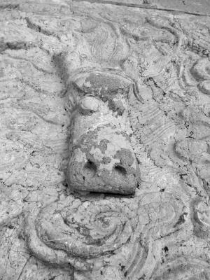 在崇圣殿前臺(tái)階處有一幅石刻團(tuán)龍,刻工精湛,堪稱清代雕刻藝術(shù)的代表作,龍?bào)w雕刻圖案惟妙惟肖。市民于先生所說(shuō)的,便是在此處的龍首。只見(jiàn)龍?bào)w雕刻圖案上,龍首損壞處確用水泥重新塑過(guò),看上去如豬嘴一般,雖然修復(fù)得“有鼻子有眼”,但看上去不倫不類,做工很是粗糙。