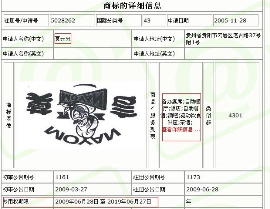 于是,莫元忠于2005年11月28日注冊(cè)了“莫言”餐廳類商標(biāo),掛起了“莫言餃子館”的牌子。記者在中國(guó)商標(biāo)網(wǎng)查到,2009年3月27日,“莫言”餐廳類商標(biāo)初審公示,同年6月28日正式注冊(cè)成功,專用權(quán)期限一直到2019年6月28日。