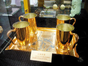 在展覽中,1974年2月贊比亞總統(tǒng)卡翁達(dá)贈(zèng)送給中共中央主席毛澤東的紅銅茶具意義非凡。茶具有一盤(pán)四杯,由紅銅制成。贊比亞銅儲(chǔ)量約占世界銅儲(chǔ)量的15%,人均銅產(chǎn)量位居世界第一,贊比亞因此有“銅礦國(guó)”之稱。有鑒于銅制品最能體現(xiàn)國(guó)家和民族特色,贊比亞領(lǐng)導(dǎo)人把銅制工藝品作為贈(zèng)送外國(guó)領(lǐng)導(dǎo)人的首選禮品。