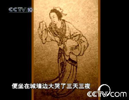 節(jié)目指出,第一個(gè)記述崩城之事的人,是西漢末年的劉向。他在《烈女傳》中先重述了《左傳》中杞粱妻的故事,然后他繼續(xù)寫到:杞粱妻沒有子嗣,娘家婆家也都沒有親屬,夫死之后成了個(gè)孤家寡人。杞粱妻“就其夫之尸于城下而哭之”,哭聲十分悲苦,過路人無不感動(dòng)。十天以后,“城為之崩”。唐代的有關(guān)記載,使杞粱妻的故事大變了模樣。杞粱由春秋的齊人變成秦朝的燕人;杞粱妻的名字出現(xiàn)了,她姓孟名仲姿,或姓孟名姜女;杞粱的死因不再是戰(zhàn)死疆場(chǎng),而是因避役被捉后筑于城墻之內(nèi),所以其妻要向城而哭;而筑于城墻之內(nèi)的死尸實(shí)在太多了,只有滴血認(rèn)骨才能辨別。杞粱妻的故事經(jīng)過六朝、隋唐時(shí)代的加工,把崩城和秦始皇聯(lián)系在了一起,這是一個(gè)不小的創(chuàng)造。