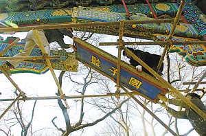 昨晚8時許,北京市文物局負(fù)責(zé)該牌樓修繕的王先生說,國子監(jiān)牌樓是民國時期修成的,2002年曾翻修,具有相當(dāng)大的文物價值。這次遭受重創(chuàng)真是可惜。