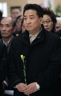 2點(diǎn)半,追悼會(huì)正式開始,大約600多位周柏春生前的摯親友好聚在大廳,為他送行。周柏春安詳?shù)靥稍邗r花叢中,接受大家的默哀和鞠躬。而此時(shí),大廳門外的群眾已經(jīng)里三層外三層,很多人甚至難掩激動(dòng)之情。