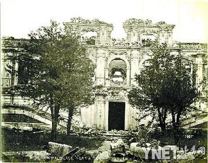圓明園于1860年被英法聯(lián)軍焚毀之后是片瓦不留,還是另有景象?三張1875年拍攝的圓明園西洋樓諧奇趣景區(qū)原版老照片就是答案:雖是殘?jiān)珨啾,但西式建筑的外輪廓、精美的雕刻和噴泉水池依然清晰。這三張圓明園老照片和另外三張清漪園(頤和園前身)的原版老照片將在北京華辰2008年春拍中被拍賣(mài)。