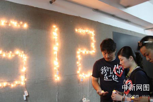 中新網(wǎng)南京六月十三日電 (牛莉) 六月十二日下午兩點二十八分,一群南京市民在南京先鋒書店,自發(fā)站成一排,手里拿著蠟燭,表情嚴肅,低頭默哀,他們的前方赫然醒目的亮著5.12這個銘記在人們心中的數(shù)字。