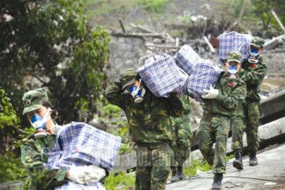 張新是四川省檔案局副局長,著名的檔案專家,他這次專門會同當(dāng)?shù)貦n案部門對北川檔案館進(jìn)行搶救性發(fā)掘。“這次搶救性挖掘難度非常大,必須要掀開‘蓋’在廢墟上的這層樓面!薄巴ㄐ胚B、尖刀連、接力連……上!”隨著300多名官兵呈扇形“包圍”廢墟,戰(zhàn)士們從廢墟頂端一直排到地面,挖掘、傳遞、裝箱、登記,每一卷“出土”的檔案都經(jīng)過了無數(shù)雙帶著體溫的手,小心翼翼地傳遞著。“找到了,這里有7箱比較完整的檔案!敝形1時許,幾名戰(zhàn)士從兩塊拱立的水泥板下刨出了一箱箱淺藍(lán)色檔案柜;焦急等候在一旁的檔案局工作人員趕緊迎上去,面帶喜色。隨著一卷卷記錄羌族政治、文化、經(jīng)濟(jì)等的珍貴檔案“重見天日”,搶救現(xiàn)場的人們臉上露出了如釋重負(fù)的笑容。