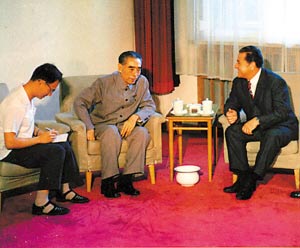接著,維爾德茨詢問(wèn)了周總理的健康情況,周總理顯示了一個(gè)徹底的唯物主義者對(duì)生死問(wèn)題的達(dá)觀坦然與大無(wú)畏,他泰然而詼諧地談到死神的來(lái)臨時(shí)說(shuō):“馬克思的請(qǐng)?zhí),我已?jīng)收到了。這沒(méi)有什么,這是不以人的主觀意志為轉(zhuǎn)移的自然法則!苯又,周總理感慨地說(shuō):“時(shí)間過(guò)得真快!還只有10年,就在10年前,我到布加勒斯特去參加喬治烏-德治的葬禮,大衣也沒(méi)穿,步行走了一個(gè)多鐘頭,F(xiàn)在,我可以告訴你,就連幾分鐘也走不了了!”這是多么真切感人的話啊!為了沖淡這過(guò)于凝重的氣氛,周總理無(wú)限深情地回憶起了以前訪問(wèn)羅馬尼亞的美好印象:“我再也不能看到漂亮的布加勒斯特了,但是我還可以從電影上、從照片上、從圖畫上看到她!”這寥寥數(shù)語(yǔ),是一位即將告別人生的偉人抒發(fā)出的對(duì)人生的無(wú)限熱愛(ài),是多么感人肺腑啊!翻譯著這些話,我的眼淚禁不住奪眶而出。