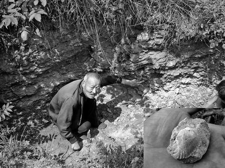 樊永慶老漢指認(rèn)化石發(fā)掘?qū)?br>