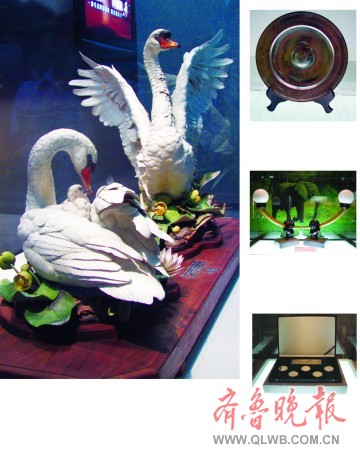 在這次展覽中,胡錦濤主席獲贈的多件國禮首次亮相。其中包括,蒙古總統(tǒng)巴嘎班迪贈送胡錦濤的銀碗,斐濟總統(tǒng)伊洛伊洛贈送胡錦濤的木帆船模型,沙特阿拉伯國王阿卜杜拉贈送給胡錦濤的鍍金雕鷹等。
