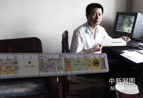 現(xiàn)年44歲的李明是吉林農(nóng)業(yè)科技學(xué)院的一名老師,從小就特別喜歡中國的歷史。2004年4月,李明無意中看到家里懸掛的歷史年份掛圖,便思量著如果把這些標(biāo)訊拉直成直尺,并且用刻度記錄下相關(guān)年份,對于學(xué)習(xí)和研究歷史將變得極其簡單。