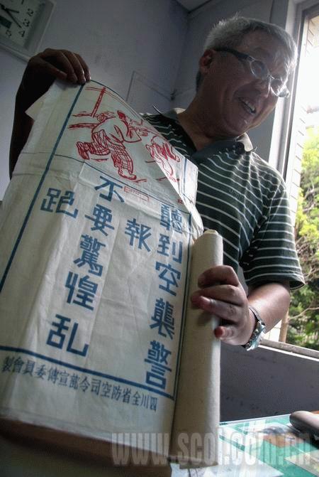 據(jù)檔案記載,當(dāng)時警報分為空襲預(yù)警、緊急和解除,以及毒氣和火災(zāi)幾種。姬勇稱,預(yù)警警報旨在提醒老百姓要注意了,而緊急警報則要求趕緊前往避難場所,證明來襲的敵機(jī)很近了!案鞣N警報音叫喚,還要分明哪一般,緊急報響莫亂竄……”由于飛機(jī)來襲頻繁,防空司令部還專門創(chuàng)作了各種民謠、宣傳畫等進(jìn)行發(fā)放,提醒大家該如何躲避空襲,如何在警報解除后保持秩序等,宣傳畫還教了一些躲避空襲的方法,比如樹下,以免敵機(jī)亂射等。同時,由于敵機(jī)來襲擊有時候在晚上,防空司令部提醒老百姓晚上點燈的時候要注意用燈罩,盡量減少燈光的亮度,以免被敵人發(fā)現(xiàn)。姬勇表示,在“9·18”拉響警報,主要是提醒大家不要忘記國難,讓后人永記歷史。此外,由于今年發(fā)生了“5·12”汶川特大地震,拉響警報也成了一種應(yīng)急措施。