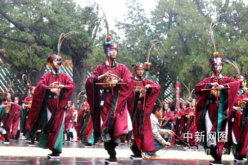 圖為在公祭孔子的儀式上表演的祭孔樂舞。作者:王超