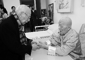 昨天下午,著名學(xué)者、漢學(xué)大師饒宗頤專程來(lái)到解放軍總醫(yī)院,看望北大資深教授季羨林。饒先生送上題字“松高唯岳”,祝愿季老身體健康。98歲高齡的季羨林與92歲高齡的饒宗頤在學(xué)界被尊稱為“南饒北季”,兩人同為當(dāng)今學(xué)界泰斗。