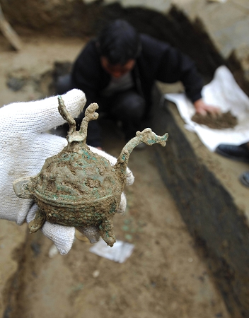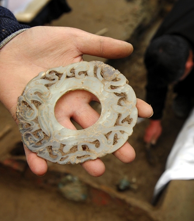 核心提示:近日,考古人員在襄樊市長虹路一建設工地進行搶救性發(fā)掘時,發(fā)現(xiàn)一大型魏晉早期墓葬,并從該墓葬后室中發(fā)掘出玉璧、水晶珠、青銅熏爐等數(shù)十件珍貴器物。
