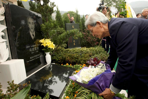 來自北京、上海、杭州等地燕京大學(xué)校友代表參加了十七日的安葬儀式。燕京大學(xué)校友會北京校友代表國仲元先生把一捧潔白的百合花輕輕地放在墓碑前:“老校長,您安息吧。”