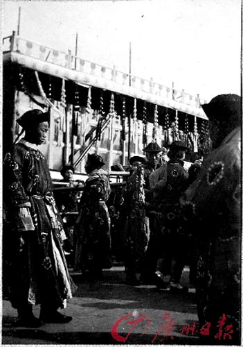 據(jù)介紹,在這些老照片中,有一組450張照片來自一位英國人,這組老照片相簿的封面上印著“BB”兩個(gè)字母。照片拍攝于1909年前后,翻開這組老照片,北京、上海、南京、香港等中國大城市的舊貌盡收眼底。其中有21張照片反映的是當(dāng)時(shí)慈禧太后入葬東陵時(shí)的情景,尤為珍貴。