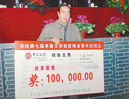 賈平凹獲得10萬元獎(jiǎng)金。 記者 尚洪濤 攝