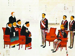 日本人繪制的馬關條約談判時的場景