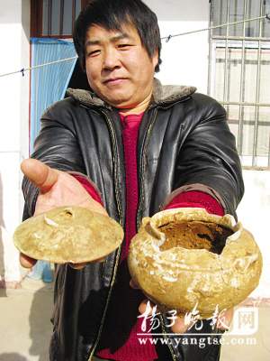 在發(fā)掘中,考古人員發(fā)現(xiàn)了4個盜洞。考古人員向記者描述,這4個盜洞中,其中有兩個在墓道上方,由于下面有著25層填土石,最長的達(dá)10米,估計(jì)盜墓賊無從下手,只好放棄了。而后方的墓室頂部就沒能幸免,盜墓賊從墓室頂部又打了兩個盜洞,這里是土層封頂,為盜墓賊提供了方便。在盜洞里,考古人員發(fā)現(xiàn)盜墓賊留下的瓷片,“從瓷片來判斷,是宋代的。瓷片型制表明是生活用品,可能是盜墓賊當(dāng)年使用的油燈!彪y道是一座宋代古墓?不可能。考古人員憑經(jīng)驗(yàn)認(rèn)為,下面一定葬有更早期的墓葬。隨著盜洞周圍的探挖不斷進(jìn)展,考古人員發(fā)現(xiàn),古墓中不斷出現(xiàn)散落的青磚,這是為什么?難道古墓完全被盜過了?挖掘到底部時,令考古人員十分痛惜,這處古墓葬的墓室部分遭到嚴(yán)重破損,墓壁四周的青磚基本被推倒,只留下了不到20厘米高的幾層墓壁,沒有發(fā)現(xiàn)棺釘和大量文物。專家分析,可能是該墓室被遷移,而非盜墓者所為。