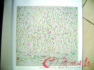 在清華大學美術(shù)學院的展廳里,陳列著滿滿兩大展區(qū)的纖維藝術(shù)作品。走進展示區(qū),著名畫家吳冠中的作品《雨花江》呈現(xiàn)在眼前。在色彩柔和的天空中,飄落下點點雨滴,還有黃色、桃紅色、綠色片片色彩鮮艷的花瓣和樹葉,雨滴和花瓣打著圈飄落下來落入江中,在水面上激出一圈圈美麗的漣漪。整幅作品營造出柔和的意境,不過,這可不是吳冠中先生真正的畫作,而吳冠中先生根據(jù)自己的名畫《雨花江》用羊毛織成的,作品名稱也叫《雨花江》。