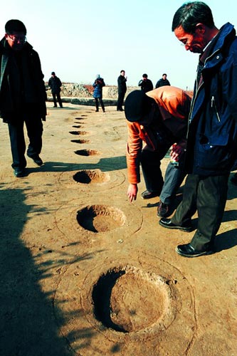 為做好南水北調(diào)工程山東段的文物保護工作,從2008年4月開始,山東省文物考古研究所、北京大學(xué)考古文博學(xué)院聯(lián)合對雙王城水庫工程范圍內(nèi)的遺址進行有計劃的發(fā)掘,發(fā)掘面積近4000平方米,發(fā)現(xiàn)多處比較完整的商周時期與制鹽有關(guān)的重要遺跡。為明確這些遺跡的性質(zhì)及意義,12月11日,山東省文物局邀請中國社會科學(xué)院考古研究所、北京大學(xué)考古文博學(xué)院及山東省文博界部分專家到壽光雙王城鹽業(yè)考古工地進行了考察,并召開了論證會。