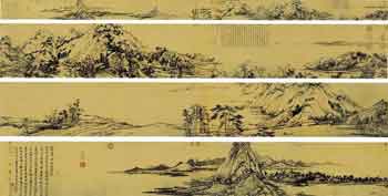一次偶然的機(jī)會(huì),沈周在畫(huà)攤上見(jiàn)到了被賣掉的《富春山居圖》,興奮異常,連忙跑回家籌錢買畫(huà)。當(dāng)他籌到錢返回畫(huà)攤時(shí),畫(huà)已經(jīng)被人買走了。沈周捶胸頓足,放聲大哭,可是后悔已經(jīng)晚矣,千辛萬(wàn)苦弄到手的《富春山居圖》,如今只剩下留在頭腦中的記憶了。無(wú)耐的沈周只能憑借著記憶,背摹了一幅《富春山居圖》。