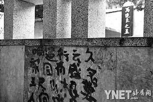 北京大學中文系的研究生小侯是在上周進行實地文史考察時發(fā)現(xiàn)這一現(xiàn)象的,當時他正籌劃為報紙撰寫有關(guān)北京旅游地理的文章。在他拍攝的照片里記錄了被涂在告知碑背后的綠色文字:“山從此地始,地到墳前終”。字跡凌亂,七扭八歪。
