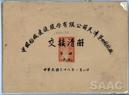 7.1949年1月—3月,天津市軍管會接管部工業(yè)處接管中國紡織建設(shè)股份有限公司天津第四、五紡織廠移交人員清冊,圖為清冊卷皮