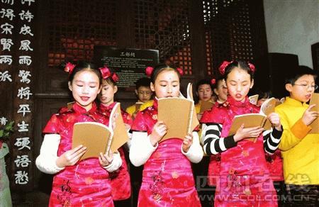 據(jù)介紹,自宋代以來,文人墨客們都會在每年春節(jié)初七“人日”這天,走進杜甫曾居住過的草堂,吟誦詩歌祭拜詩圣。今年杜甫草堂博物館特意在祭拜詩圣杜甫儀式中斷百年之后重新恢復(fù),是對草堂“人日”活動的充實,更是對詩歌文化內(nèi)涵的進一步傳承和弘揚。