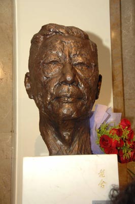 當(dāng)晚,作為紀(jì)念老舍誕辰110周年的重要活動,由北京人民藝術(shù)劇院組織鑄造的老舍先生頭像雕塑在首都劇場舉行了隆重的揭幕儀式,以此向這位為北京人藝奠定了風(fēng)格基礎(chǔ)的文學(xué)巨匠致敬。