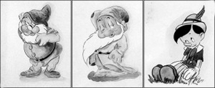挪威北部一戰(zhàn)爭博物館館長威廉姆·哈克瓦格稱,他是在一個簽名為希特勒的繪畫作品的背后發(fā)現(xiàn)這些卡通人物像的,他在德國的一個拍賣會上買下了那幅希特勒的繪畫作品。他發(fā)現(xiàn)了迪士尼1937年電影《白雪公主》人物“萬事通”和“害羞鬼”的卡通人像圖,圖上有希特勒的簽名,另外一張“匹諾曹”的素描則沒有簽名!捌ブZ曹”曾在一部1940年的迪士尼電影中出現(xiàn)。