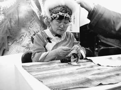 “鞋雖小,要做兩天呢。魚皮從剝下、去鱗、晾干、軋熟、裁剪縫制,工序多,很累人,要花幾天工夫的。”說話時,她手里的針仍然在來回穿梭。這里的她,是黑龍江同江市津街口鄉(xiāng)漁業(yè)村的漁民尤文鳳,魚皮服制作技藝的國家級代表性傳承人。中國非物質(zhì)文化遺產(chǎn)傳統(tǒng)技藝大展,目前正在北京舉行,大展期間,隨著人流走進(jìn)展館時,我在她的展位前一再流連。
